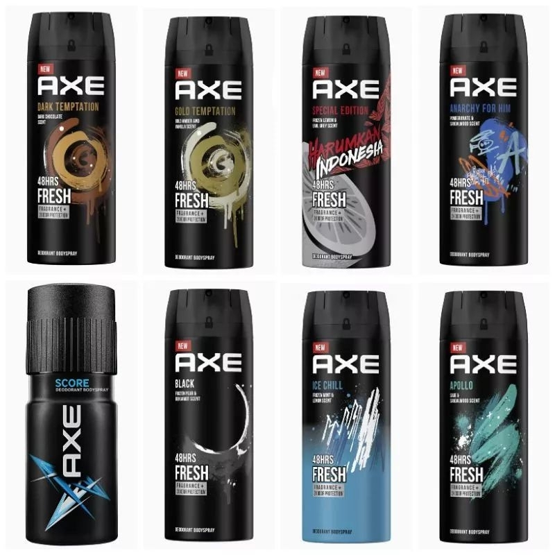 Deodoran semprot persembahan AXE yang satu ini siap mencegah bau tidak sedap karena keringat berlebih dari ketiak Anda. AXE memberi perlindungan untuk tubuh sepanjang hari khususnya pada ketiak agar tetap kering. Hadir dalam wangi aroma buah-buahan yang segar dan berani, deodoran body spray ini siap menemani petualanganmu bareng si dia ke berbagai tempat baru yang menantang