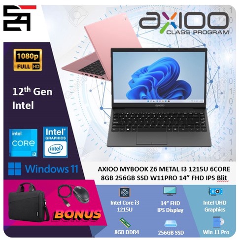 Detail Axioo Mybook Z6 Metal i3 1215U 6 Core 8GB 256GB SSD W11 Pro 14 Inchi FHD IPS Blit