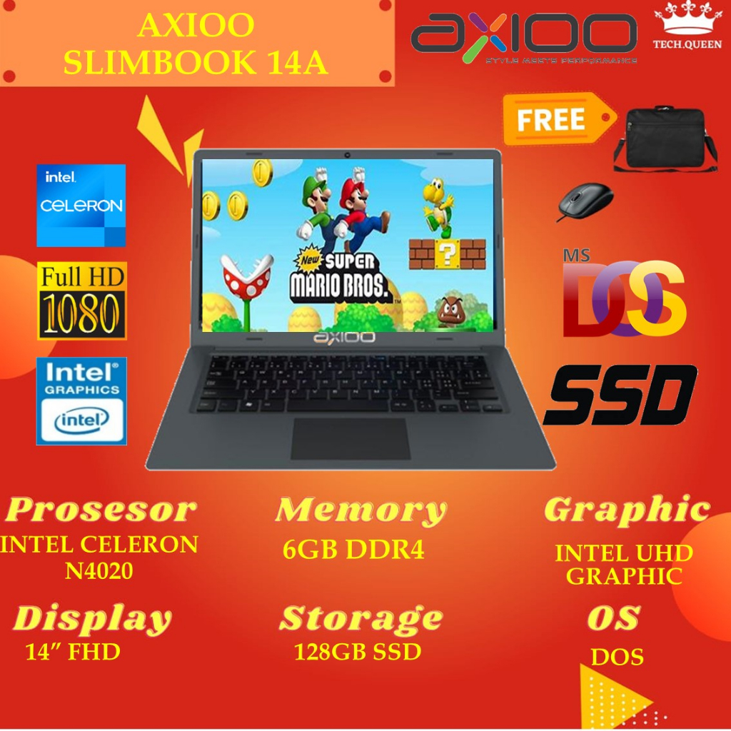 Merek : AXIOO Type Laptop : AXIOO SLIMBOOK 14A N4020 6GB 128SSD DOS 14.0 GRY
