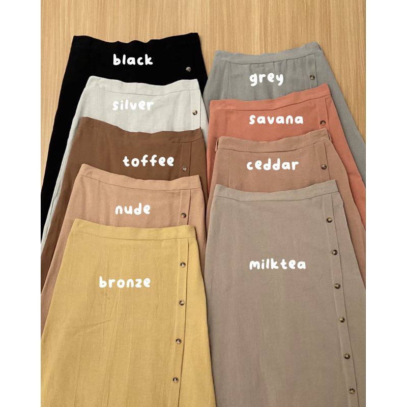 Bahan linen yang digunakan tidak kaku, tingkat ketebalan yang pas membuat ayaka nyama digunakan sehari-hari. Bagian belakang dilengkapi karet & resleting Saku disamping detail variasi kancing dibagian depan menambahkan tampilan yang sangat chic & elegant Free tali yang bisa digunakan sebagai belt