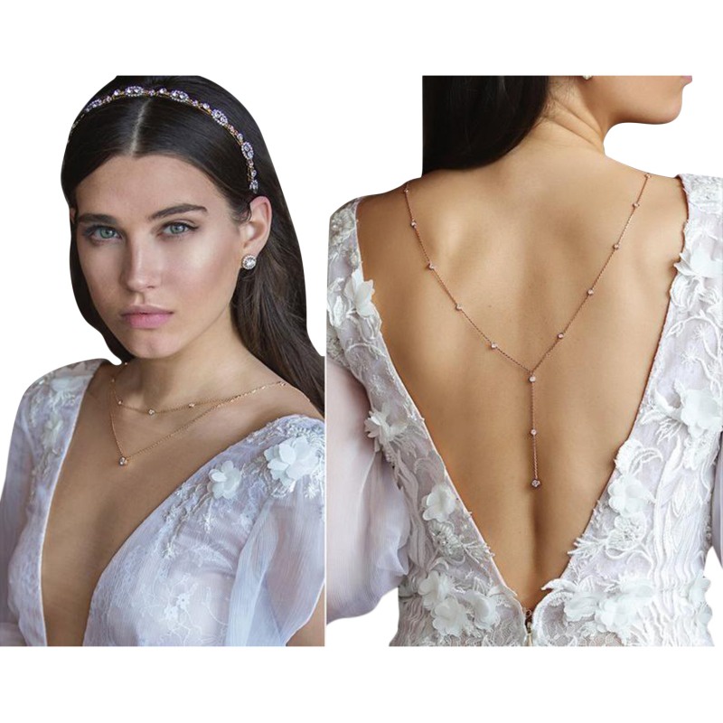 Backdrop Kalung Indah Kristal Berlian Imitasi Kembali Perak Atau Emas Rantai Kalung Pesta Pernikahan