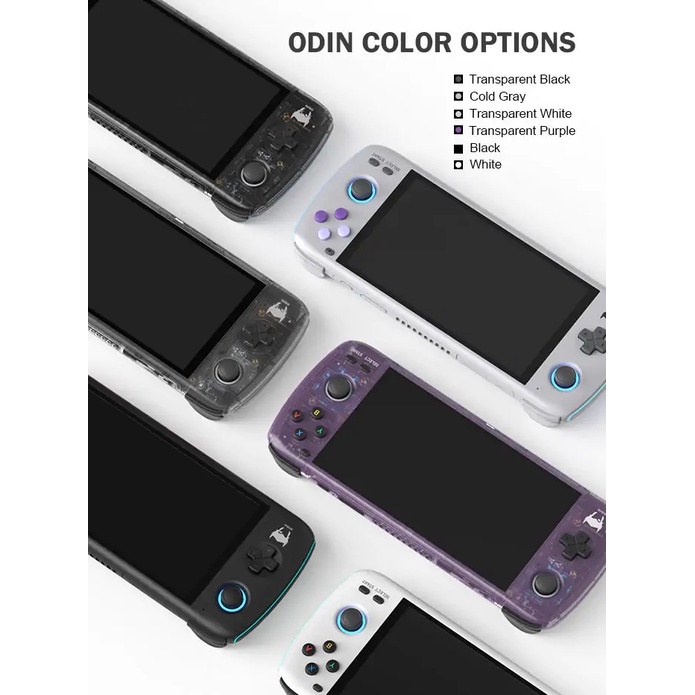 AYN Odin Base / Pro - CPU : Qualcomm Snapdragon 845 - GPU : Adreno 63@787 MHZ - Ram & Rom : 8/128GB (Odin Pro) - Battery : 6600 mAh - OS : Android 11 - WiFi : 2.4 / 5G - Screen : 5.96 inch IPS Screen - Bluetooth : BT 5.0