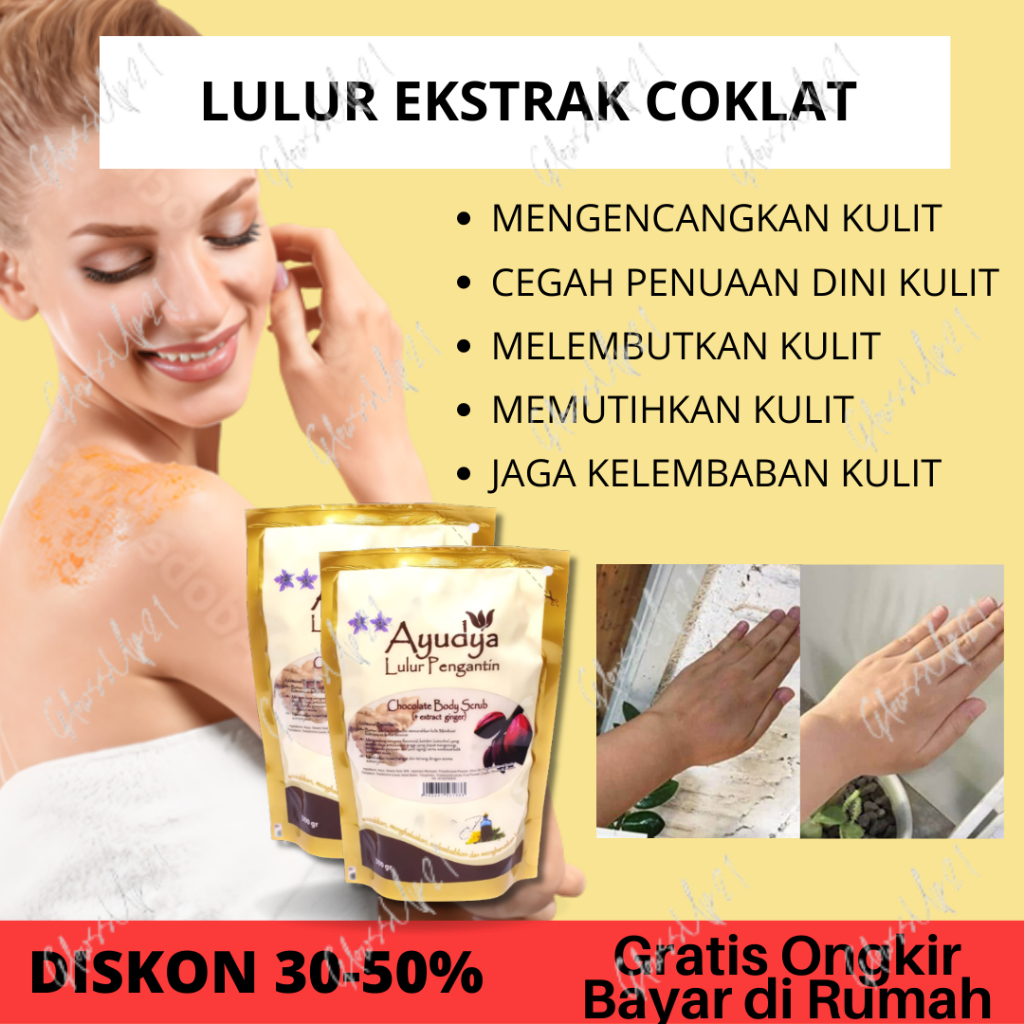 Suitable for : Dry to extra dry skin Best if you want to : Brighten skin with chocolate Moisturize skin conditions Provide a sense of warm and calm effect with ginger extract Applications : Massage in circular movements all over the body and rinse off with water, this product can be used as a substitute to your regular body soap Available in : 5 sizes,100, 150, 300gr (jar and refill pack), and 1000gr (refill pack) Contains : pure milk, olive oil, chocolate powder, ginger extract, vitamin C & E, herbal oils and other natural ingredients24800, Mutiara, Coffee Lavender, Avocado, Chocolate, Goat’s Milk, Putih (beras), dan Fruit Scrub