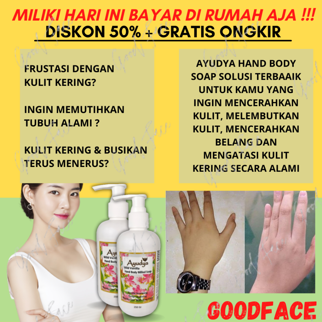 Ayudya Wild Vanila Soap Gentle foaming, deep cleansing, moisturized with aloe vera Paduan dari busa yang lembut dan aloe vera extract, Citrullus lanatus fruit extract, merupakan antioxidant membantu mengatasi pori pori tersumbat dari kulit kusam, diperkaya dengan avocado oil untuk kulit sehat , cantik dan elastis.