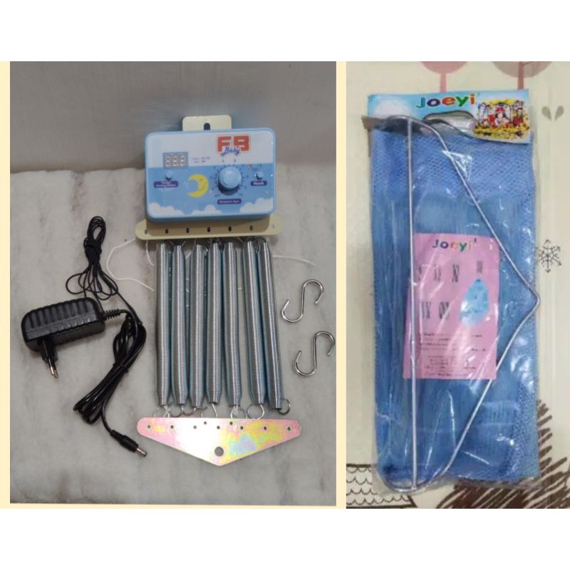 isi paket 1 set ayunan listrik fbbaby 7 per 1 pc hanger joeyi 1 pc kain ayunan plus kelambu