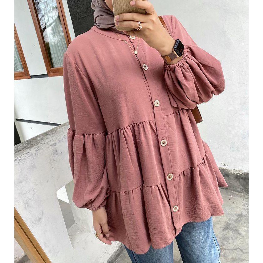 AYUNDA BLOUSE CRINKLE WANITA // ATASAN REMPEL FULL KANCING WANITA
