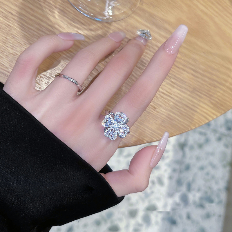 Detail AZ267 【Barang spot】Cincin Titanium Wanita Mewah Kristal Berlian Fashion Korea Aksesoris Jewerly Cincin Tunangan Murah