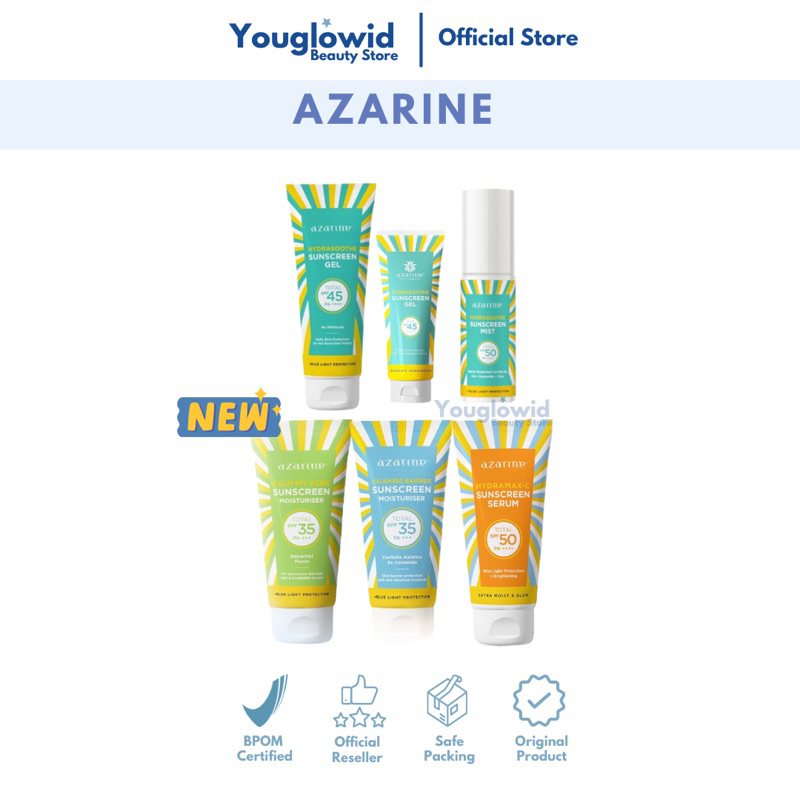 Video perkenalan produk AZARINE - Calm My Acne Sunscreen Moisturiser SPF35 PA+++ | Cicamide Barrier Sunscreen Moisturiser SPF35| Hydrasoothe Sunscreen Gel SPF45 | Hydrasoothe Sunscreen Mist SPF50 | Hydramax-C Sunscreen Serum SPF50 PA++++ | Sunscreen Moisturizer Kulit Wajah. Sumber: Shopee.