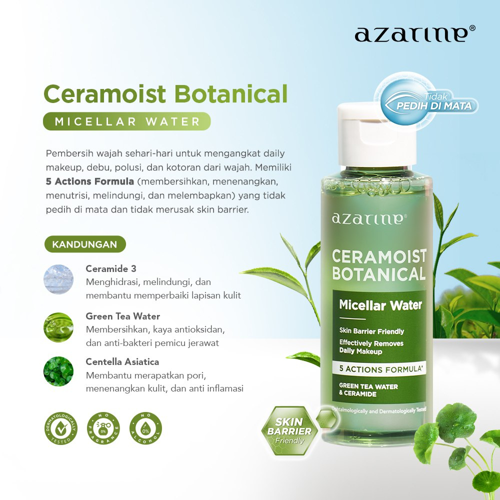 Kandungan : - Ceramide 3 Menghidrasi, melindungi, dan membantu memperbaiki lapisan kulit - Green Tea Water Membersihkan, kaya antioksidan, dan anti-bakteri pemicu jerawat - Cencella Asiatica Memebantu merapatkan pori, menenangkan kulit, dan anti inflamasi
