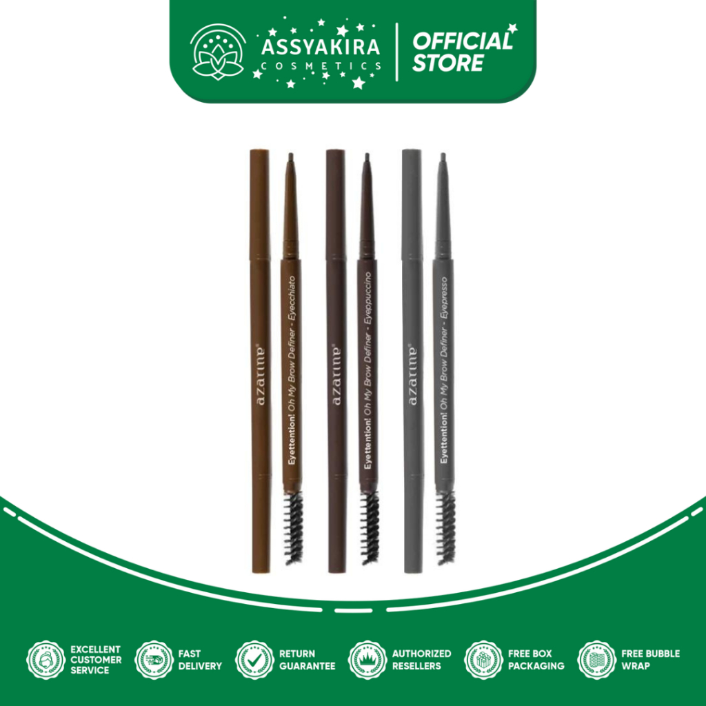 Keunggulan Eyebrow Azarine: 1. Slim & Precise 2. Perfectly defined hair stroke 3. Beginner Friendly 4. Buildable & blendable 5. Soft spoolie brush 6. Last all day