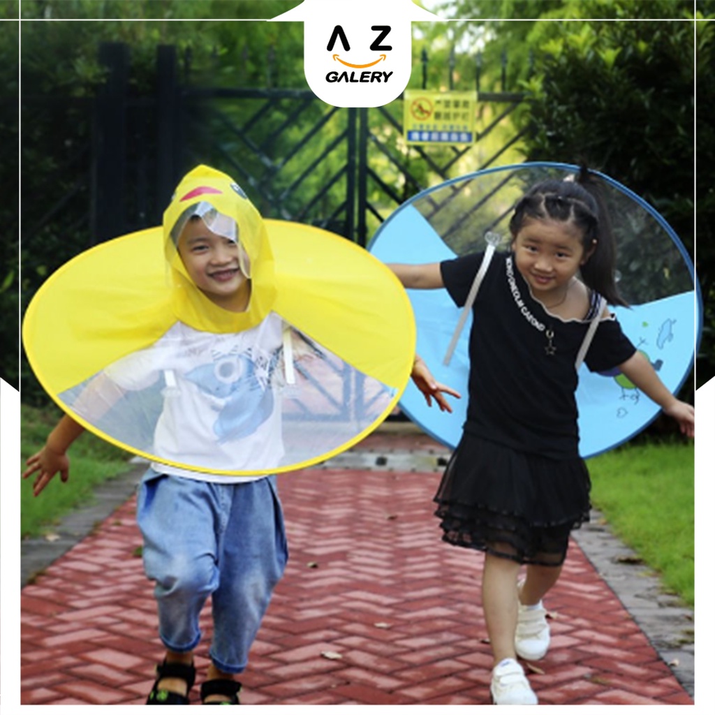 Detail Azgalery Jas Hujan Topi Ufo Payung Bulat Tanpa Pegang Jas Hujan Anak PVC HW-152