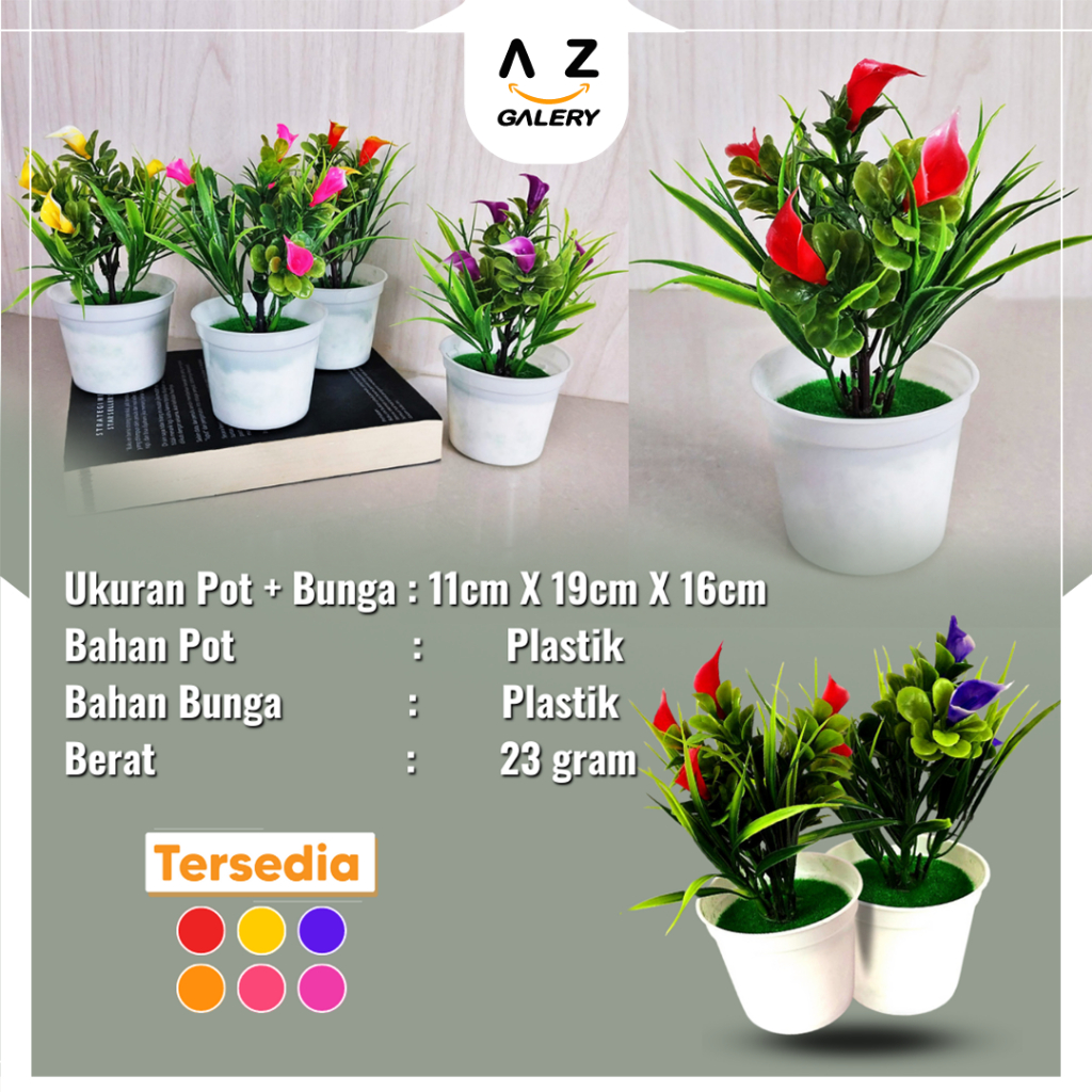 🪴 Bahan Pot : Plastik 🪴 Bahan Bunga : Plastik 🪴 Ukuran Pot + Bunga : 11cm X 19cm X 16cm 🪴 Berat : 23 gram
