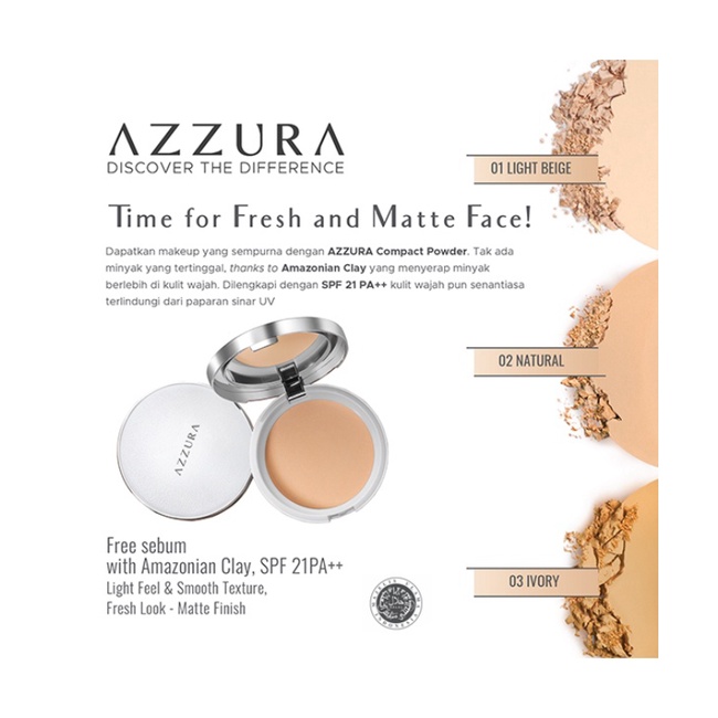 Dapatkan makeup yang sempurna dengan AZZURA Compact Powder.