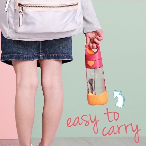 Made from Tritan®, our unique big kids’ drink bottle is ideal for kindy and school kids. Its unique triangle shape bottle is designed specifically for little hands, making it easier for kids to grip. Easy push button pops open the lid, keeping straw tops hygienic when closed and never goes astray. Spill-proof bite valve straw top prevents accidental spills. Robust carry handle makes it easy for kids to carry and remove out of school bags. Its 450ml capacity and angled silicone straw lets kids drink to the very last drop and stay hydrated throughout the day. Minimal parts and ultra easy to assemble / disassemble and clean. Dishwasher safe.