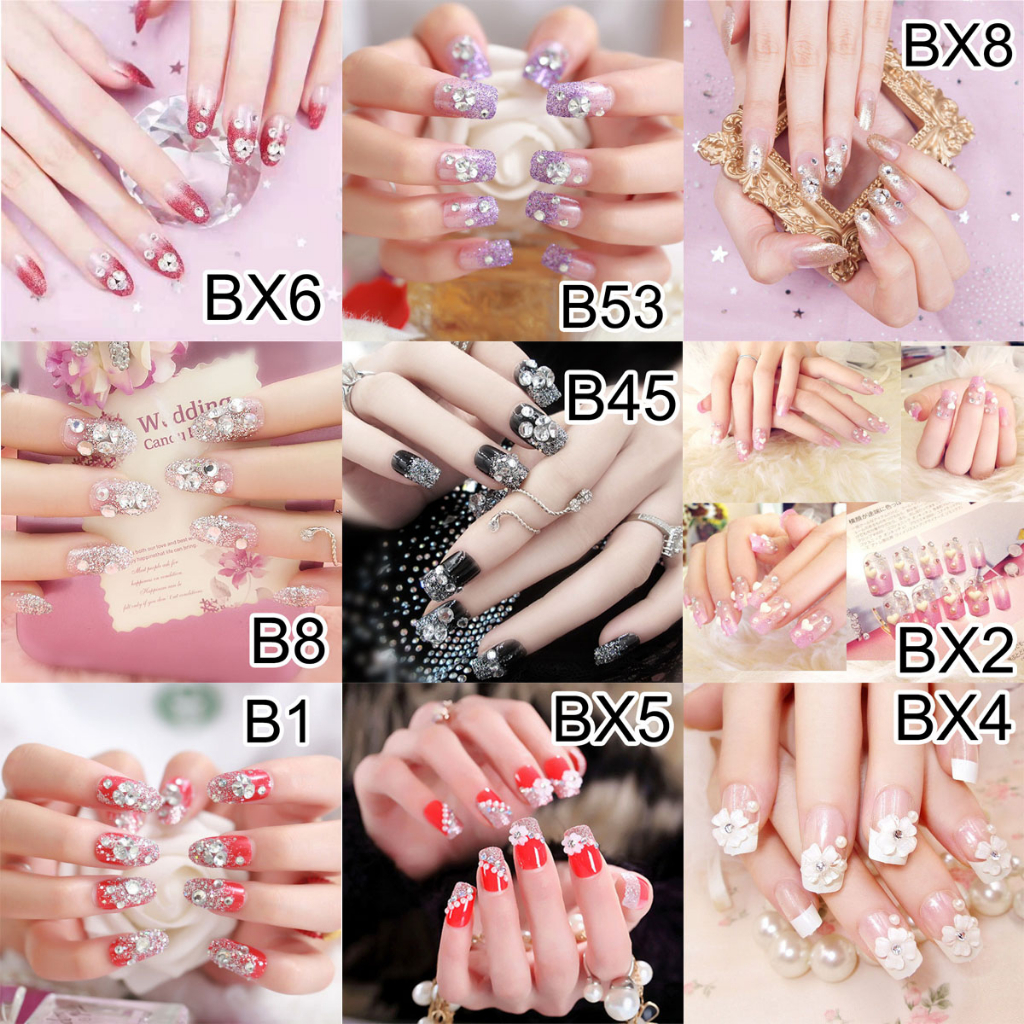 Detail B-Series Kuku Palsu Lem 3D Wedding Pesta Pengantin Fake Nails Aesthetic + Lem