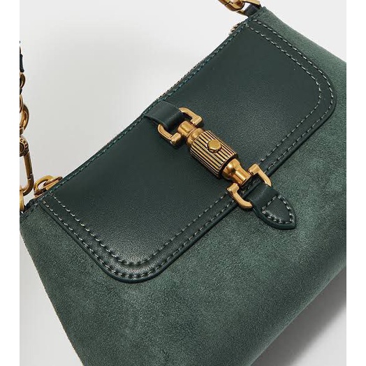 Single chain handle Zip closure Comes with adjustable strap (detachable) Material: Faux leather Depth (cm): 8 Width (cm): 20 Height (cm): 13