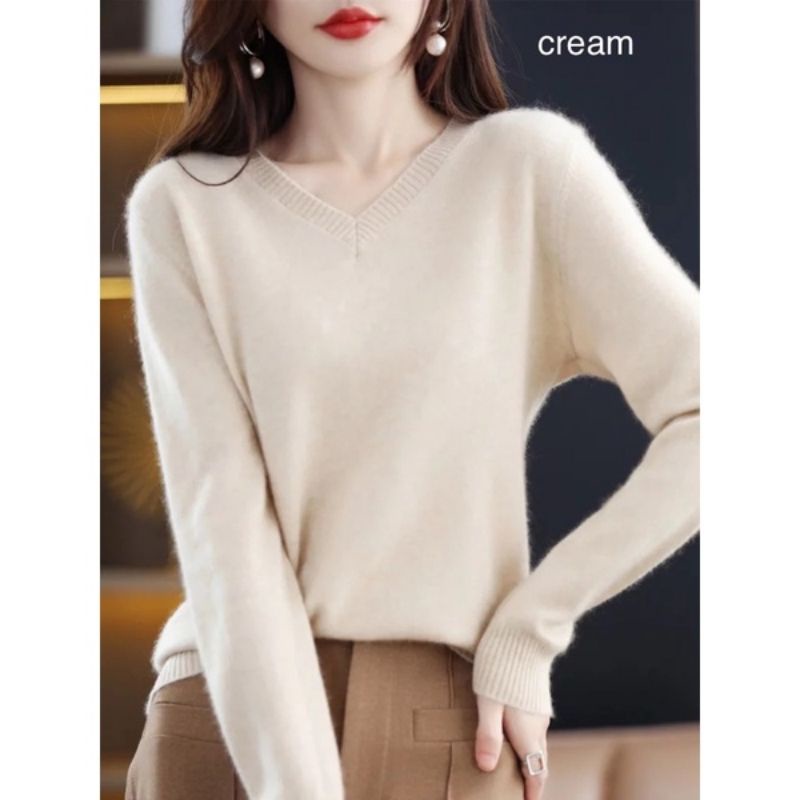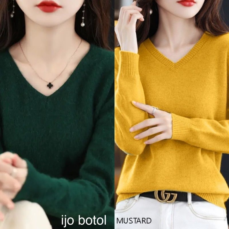 Video perkenalan produk (B187) V Neck Long Sleeve Knitted blouse sweater. Sumber: Shopee.