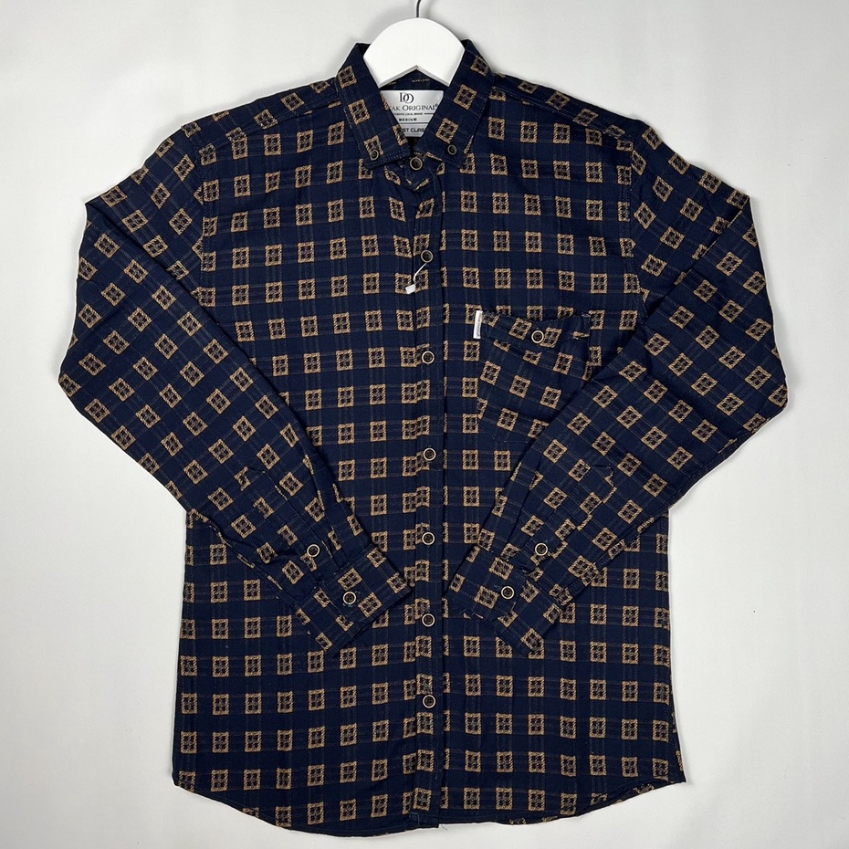 Detail BABEDO KEMEJA FLANEL PRIA MOTIF KOTAK KOTAK BRAND CASTLE'S ID KEMEJA KANTOR NEW NAVY GOLD
