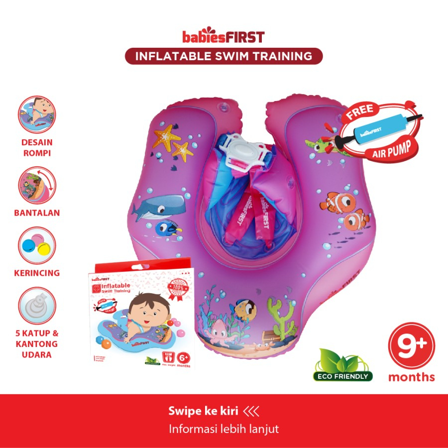BABIESFIRST INFLATABLE SWIM TRAINING BF302 Swim training dari babiesFIRST ini dirancang dengan standar keamanan yang tinggi, membantu bayi berenang dan bergerak bebas dengan percaya diri tanpa khawatir ban berenang akan terbalik.