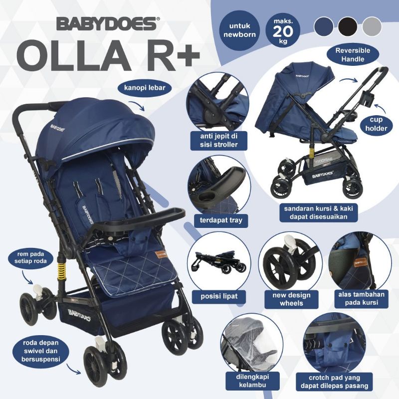 Baby Does Stroller Olla R+ Revesible Handle CH 3291 memiliki fitur sebagai berikut ; - Dapat digunakan dari newborn sampai berat maksimum anak 20 kg - space / ruang pada engsel stroller yang cukup lebar, mencegah jari anak terjepit - New design wheels - Terdapat crotch pad yang dapat dilepas pasang - Posisi sandaran kursi dan sandaran kaki dapat disesuaikan - Reversible handle - Terdapat peek a boo - 5 titik sabuk pengaman - Tombol pengatur swivel pada roda depan - Terdapat rem pada setiap roda - Terdapat suspensi - Terdapat cup holder - Dilengkapi dengan keranjang - Terdapat tray - Terdapat kelambu