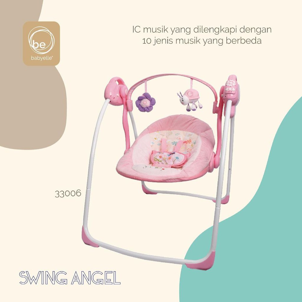Baby Elle Automatic Swing : - ayunan otomatis ( memakai adaptor atau baterai )( sudah included adaptor ) - kecepatan bisa diatur - bisa 2 posisi - ada 10 melodi musik - bisa diatur ayunan ampe 6 kecepatan - dilengkapi dengan musik untuk menenangkan bayi - ada 2 mainan gantungan lucu - Usia : 0-12 bulan (berat max 15 kg) - Dimensi : 58x36x13 cm