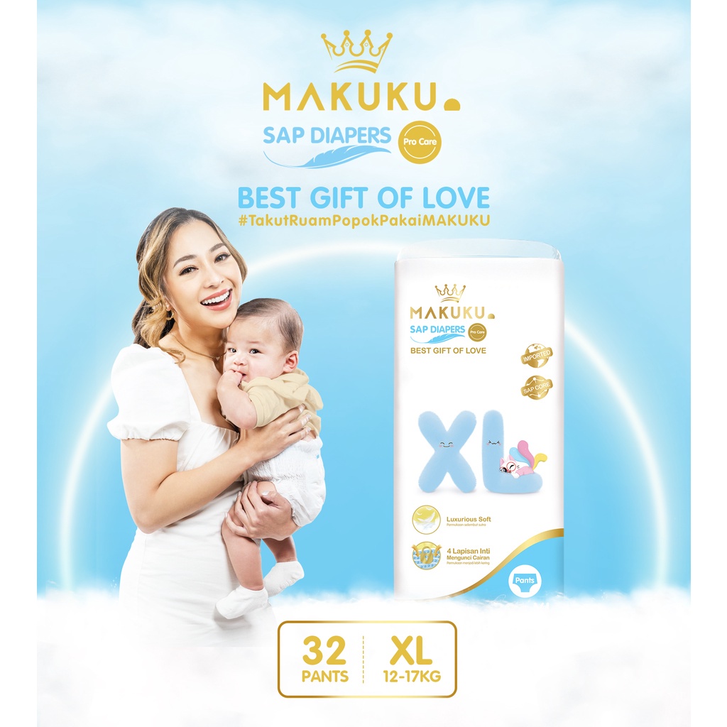 Detail produk: Brand : MAKUKU Series : MAKUKU PROCARE Tipe popok : Pants / Celana Ukuran: XL Isi: 1 Pack