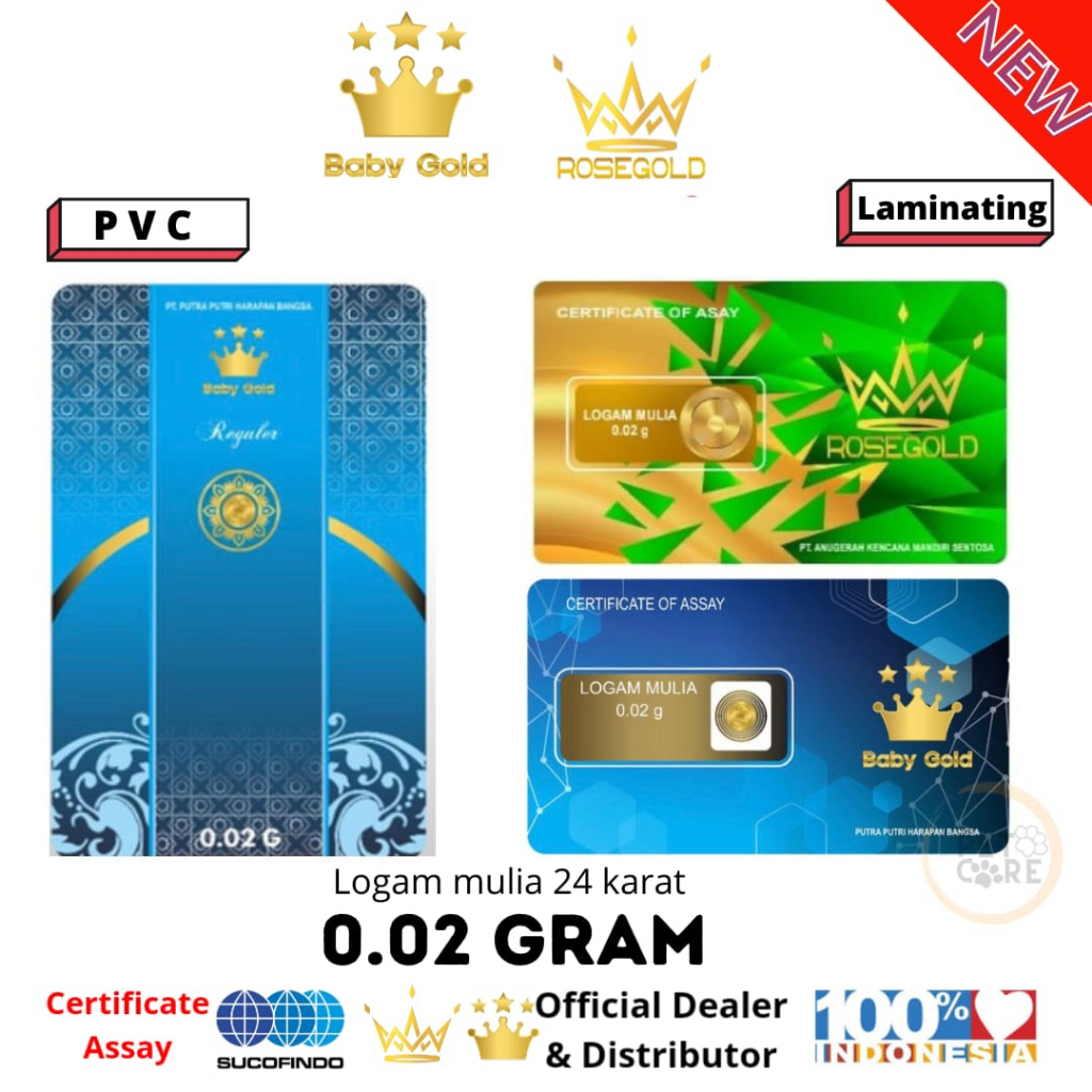 💛BABY GOLD merupakan emas 24 karat bersertifikat resmi ASSAY SUCOFINDO persembahan dari PT. Putra Putri Harapan Bangsa terdiri dari berbagai macam ukuran mulai dari : 0.001 Gram 0.002 Gram 0.005 Gram 0.01 Gram 0.02 Gram 0.05 Gram 0.1 Gram 0.25 gr 0.5 gr 1 gr
