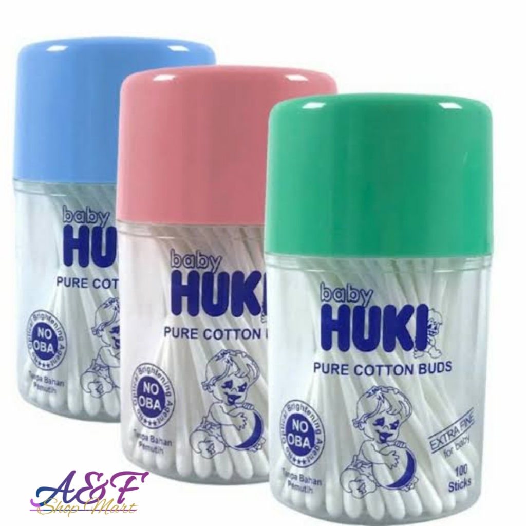 Cotton buds baby HUKI dirancang khusus untuk membersihkan telinga, hidung dan pusar bayi dengan baik serta aman karena kapas tidak akan tertinggal. Bersihkan telinga, hidung dan pusar si kecil dari kotoran dengan menggunakan Huki Cotton Buds yang berukuran kecil khusus digunakan untuk telinga buah hati Anda. Kemasan dirancang khusus untuk menjaga kebersihan produk walaupun sudah di buka. Terbuat dari 100% dari kapas alam, tidak menggandung merkuri dan OBA (Optical Brightening Agent) atau bahan pemutih.
