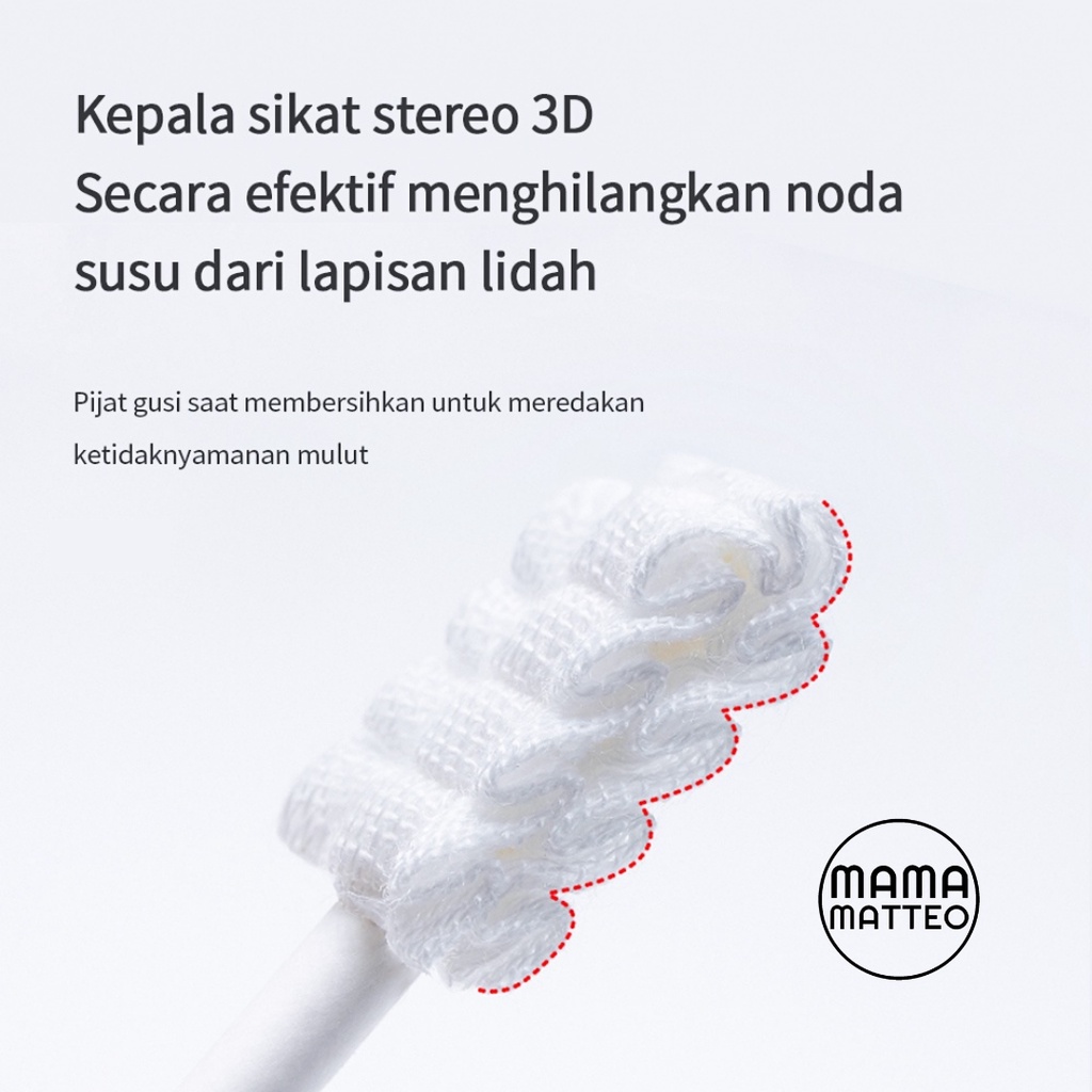 - Bahan : Kasa skim, pegangan kertas ramah lingkungan - Warna : Putih - Usia : Bisa dari newborn - Penggunaan : Penggunaan kering / gunakan minyak wijen atau air hangat, kasa steril suhu tinggi, basah dan kering - Tujuan : Membersihkan mulut dan lidah bayi