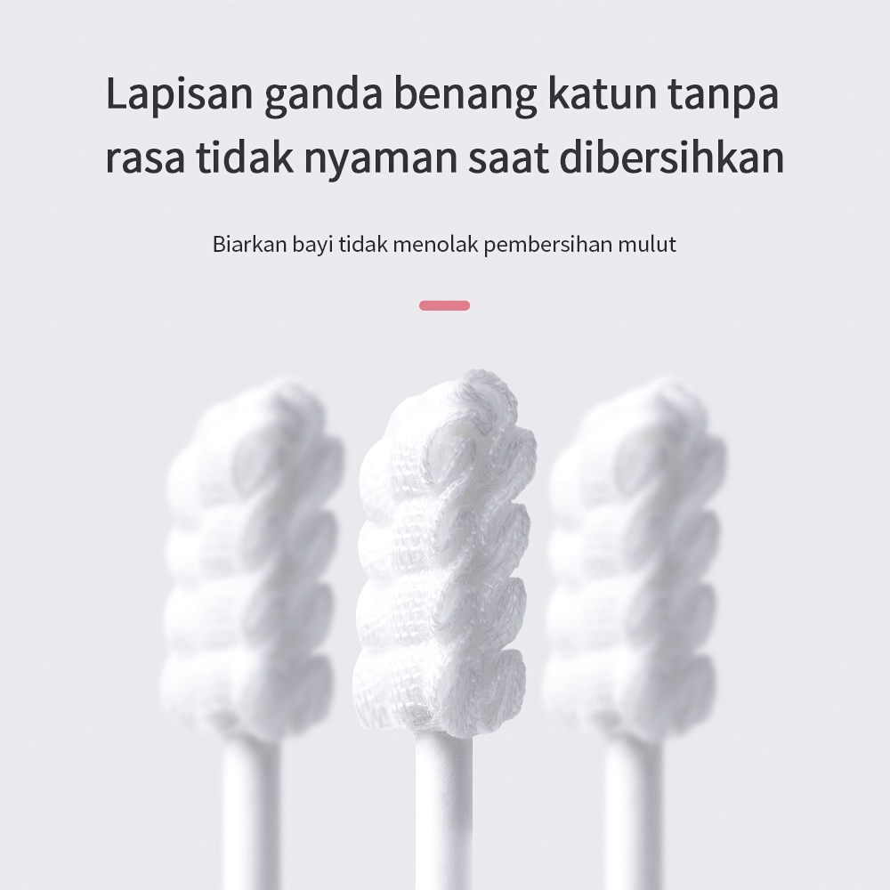- Bahan : Kasa skim, pegangan kertas ramah lingkungan - Warna : Putih - Usia : Bisa dari newborn - Penggunaan : Penggunaan kering / gunakan minyak wijen atau air hangat, kasa steril suhu tinggi, basah dan kering - Tujuan : Membersihkan mulut dan lidah bayi