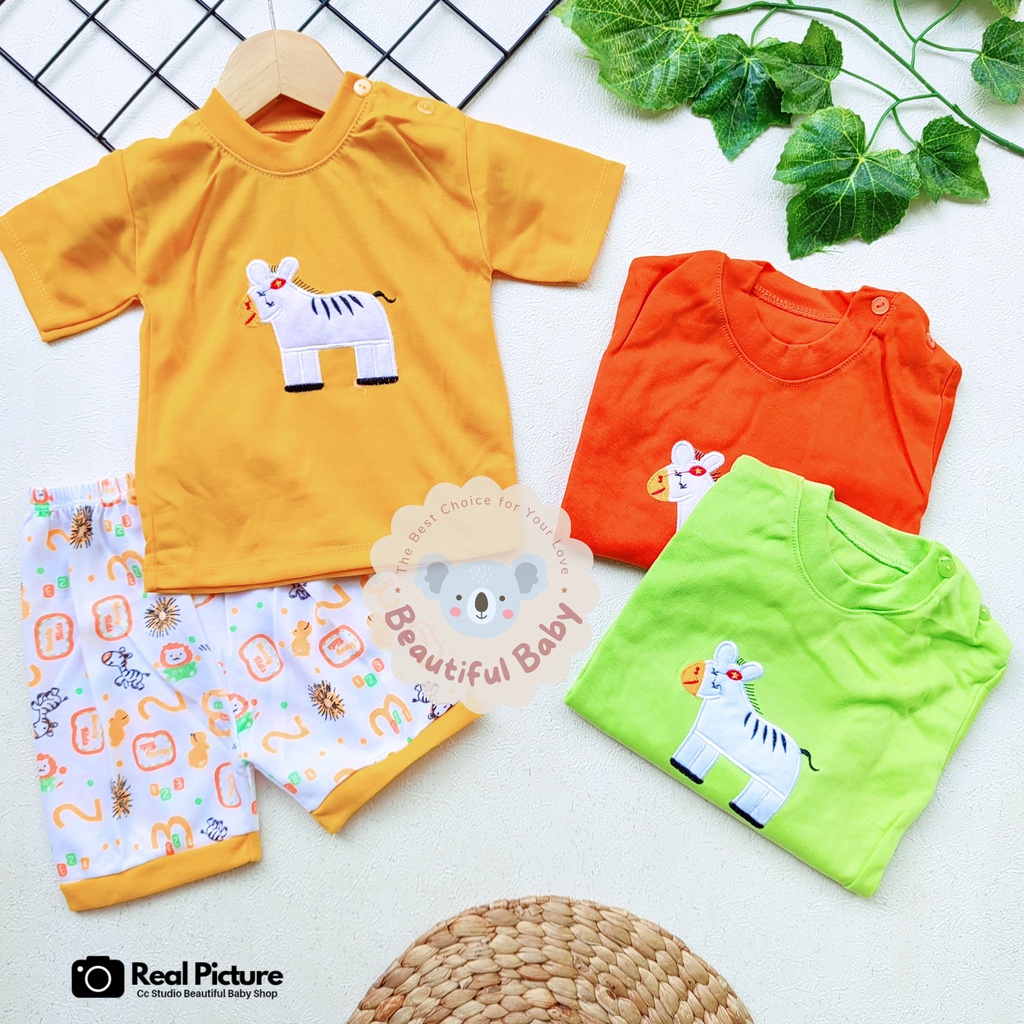 Detail Baby.ou - Setelan Baju Bayi Tangan Pendek Celana Pendek Motif Bordir Zebra / Setelan Pendek Bayi / Baju Bayi Panjang Merk Yansur Baby / Set Harian Bayi