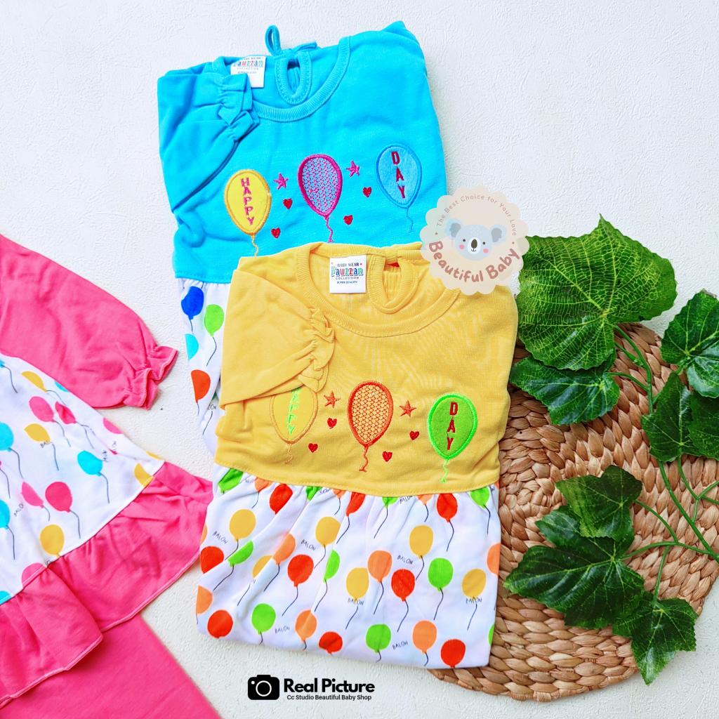 Fashion Muslim > Pakaian Muslim Anak > Pakaian Muslim Anak Perempuan > Baby.ou - Setelan Baju Bayi Muslim Perempuan 3-12 Bulan Motif Balon / Set Hijab Bayi / Kerudung Bayi / Gamis Bayi Perempuan