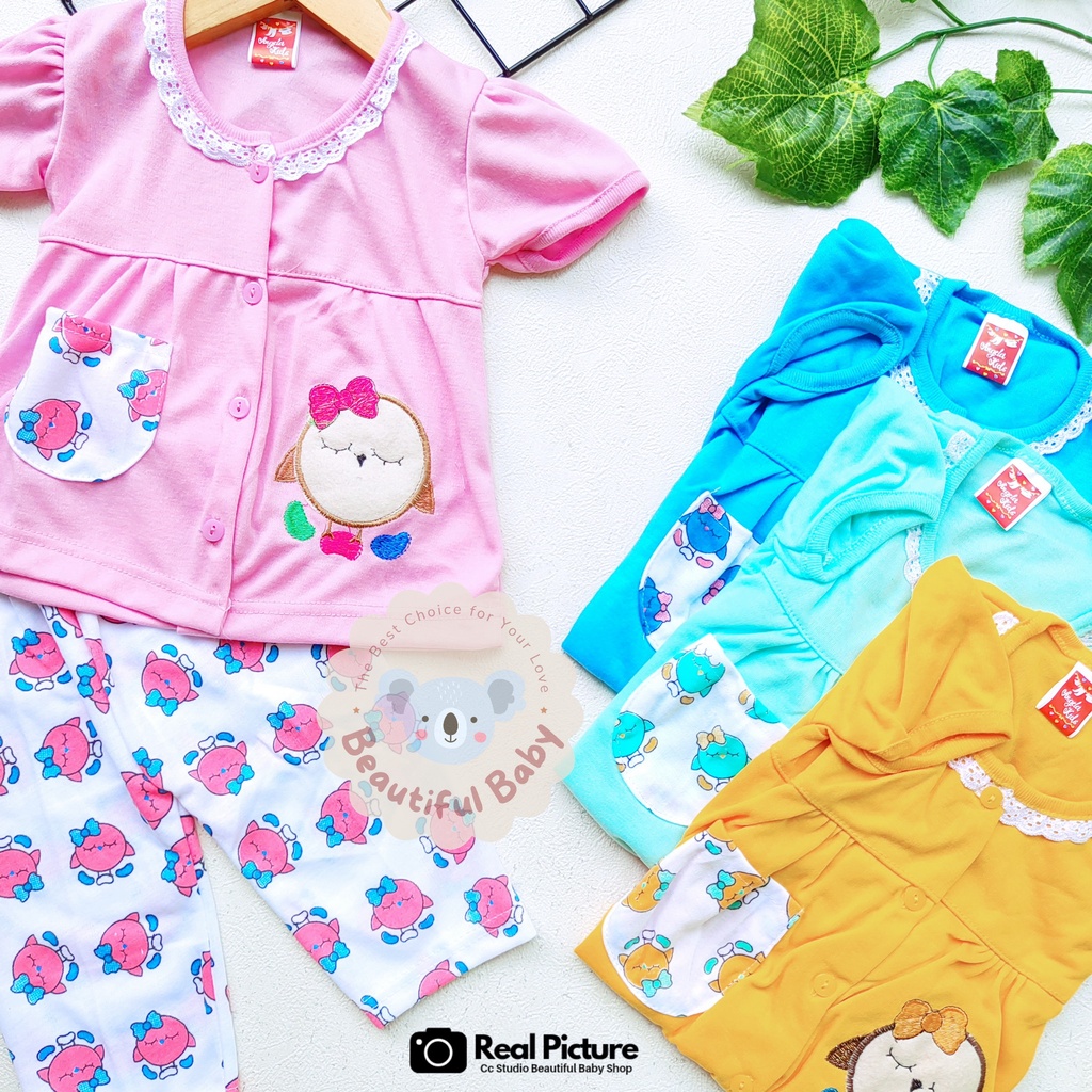 Bahan Katun 100% Halus, Nyaman Dipakai, Nyerap Keringat Cocok dipakai untuk sehari-hari ya mom Harga Untuk Satu Setel ya mommy ------------------------- Warna : Pink Biru Kuning Hijau ------------------------ Size 3-12 Bulan (All size) Details Size Baju: LD - 27cm PJ - 37cm Celana: Pinggang full karet Lingkar Paha - 32cm PJ - 39cm ------------------------- CATATAN Size hanya perkiraan ya mom, semua balik lagi ke postur tubuh baby , agar lebih akurat bisa diukur LD dan PJ celana ya , kami tidak menerima complain barang kekecilan ❤
