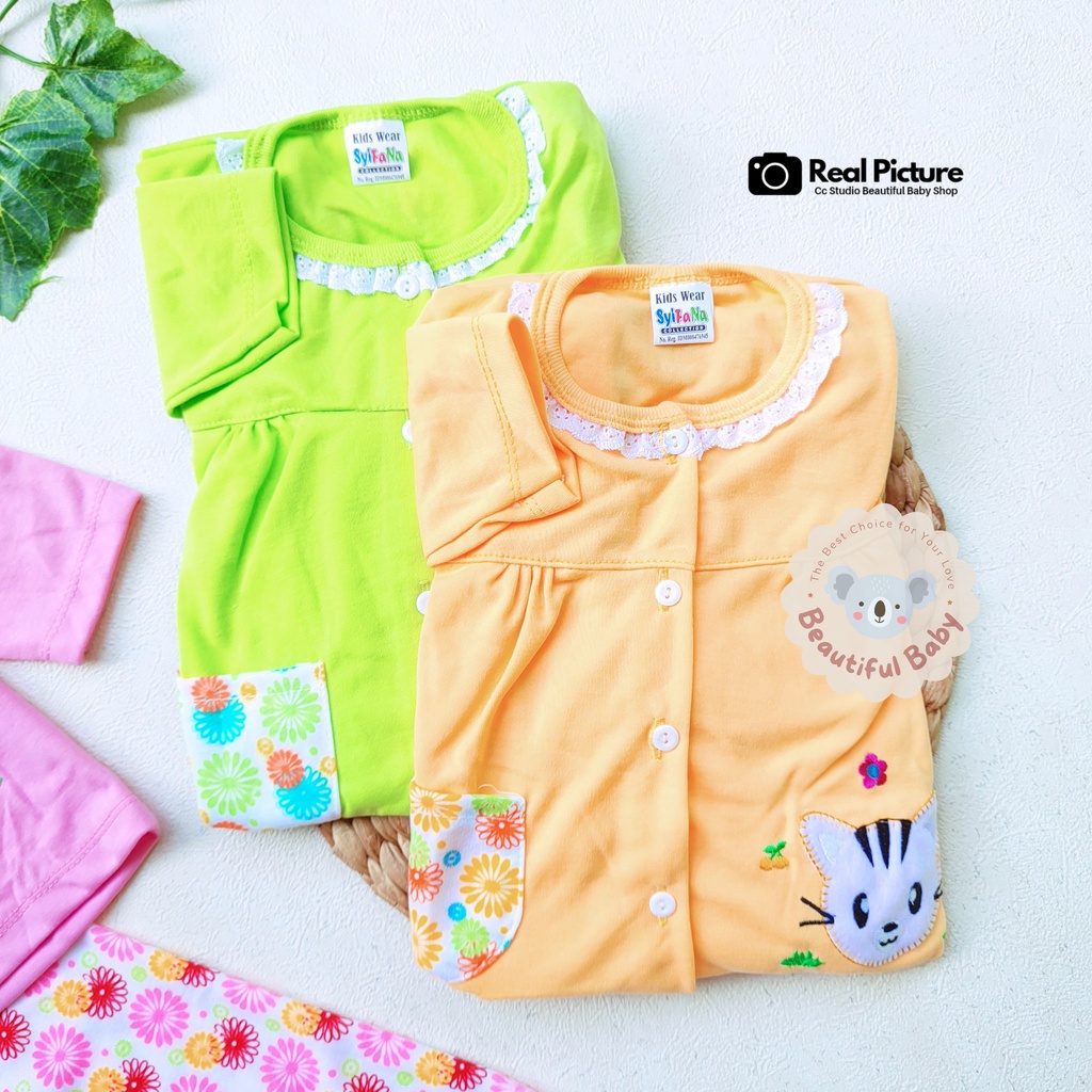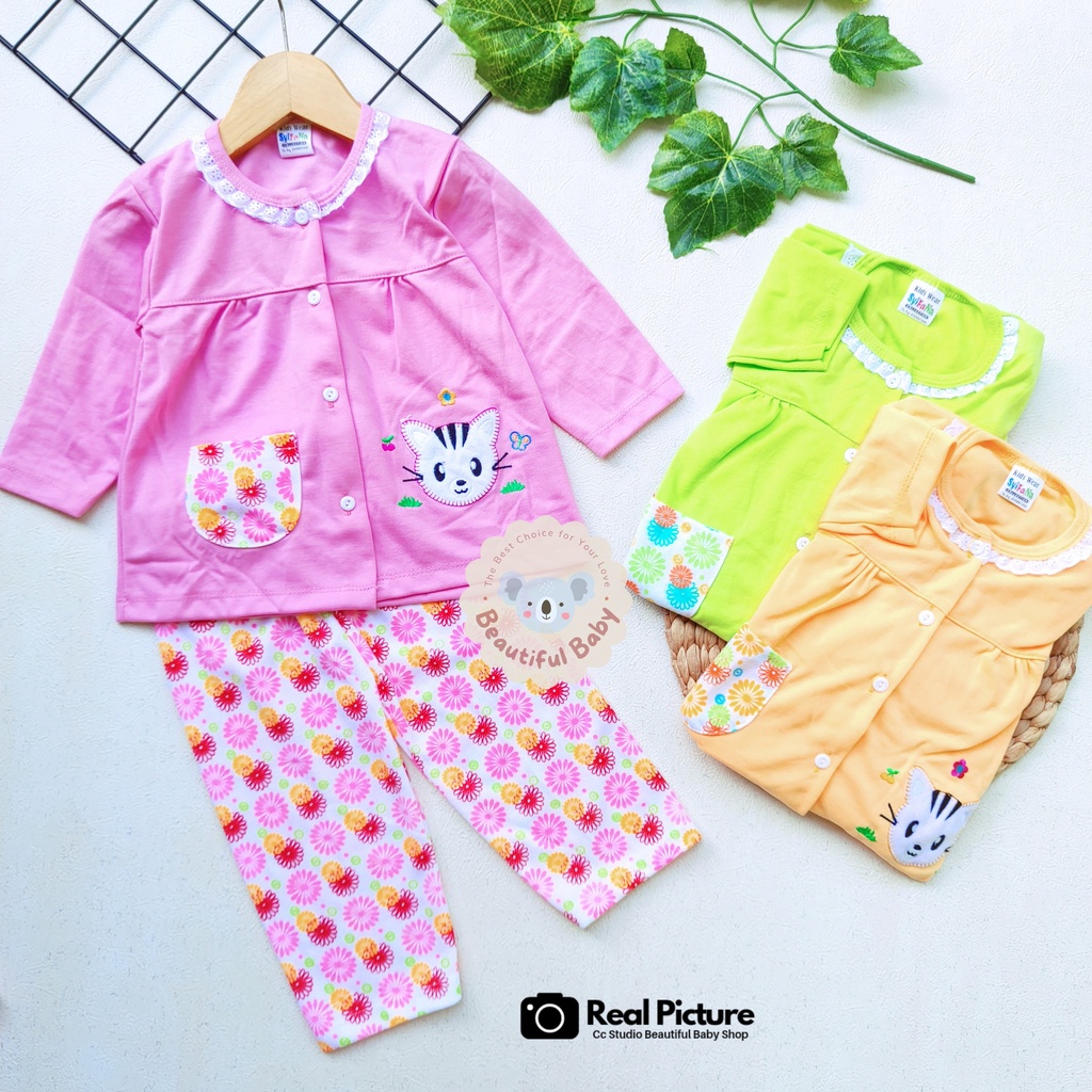 Bahan Katun 100% Halus, Nyaman Dipakai, Nyerap Keringat Cocok dipakai untuk sehari-hari ya mom Harga Untuk Satu Setel ya mommy ------------------------- Warna : Pink Hijau Kuning ------------------------ Size 3-12 Bulan (All size) Details Size Baju: LD - 27cm PJ - 37cm Celana: Pinggang full karet Lingkar Paha - 32cm PJ - 39cm ------------------------- CATATAN Size hanya perkiraan ya mom, semua balik lagi ke postur tubuh baby , agar lebih akurat bisa diukur LD dan PJ celana ya , kami tidak menerima complain barang kekecilan ❤