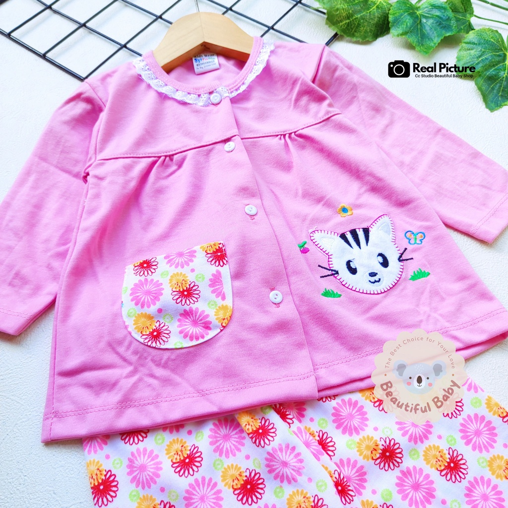 Detail Baby.ou - Setelan Baju Bayi Lengan Panjang Celana Panjang Motif Bordir Cat / Setelan Piyama Bayi Perempuan 3-12 Bulan / Baju Bayi Perempuan Yeiko