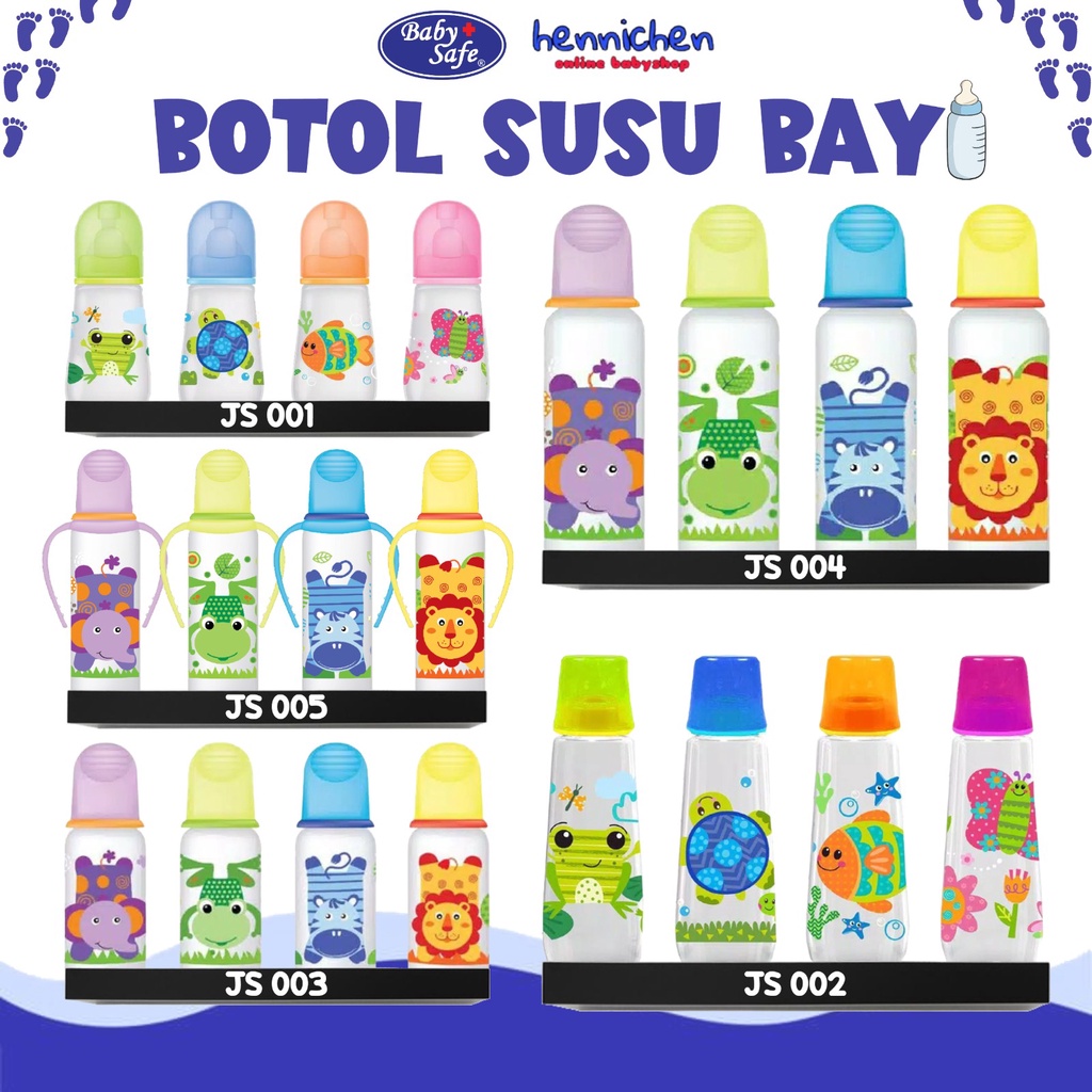 BabySafe menghadirkan botol susu dengan bahan Polypropylene (PP) yang bebas dari bisphenol A (BPA Free). Dotnya memiliki bentuk alami untuk mendukung perkembangan gigi dan rahang bayi. Koleksi botol susu BabySafe memenuhi standar nasional & internasional untuk peralatan makan anak, serta berbahan food grade sehingga aman untuk si kecil. Design botolnya menarik dengan karakter hewan lucu dan dua pegangan botol, membuat acara minum susu si kecil jadi menyenangkan.