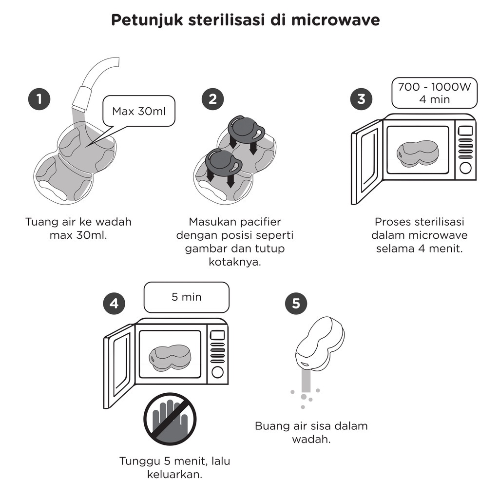 Pacifier ini dilengkapi kotak penyimpanan yang dapat digunakan untuk sterilisasi di microwave. Terbuat dari material BPA Free serta lulus uji sertifikat nasional dan internasional EN1400/ EN12586 untuk dot bayi.