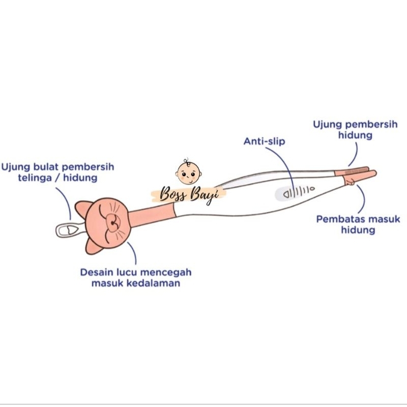 Merupakan alat bantu aman untuk membersihkan hidung dan telinga bayi.