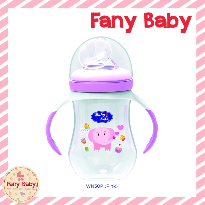Baby Safe 3 Stage Feeding System ini merupakan botol susu dengan leher lebar yang dapat digunakan hingga tiga tahap perkembangan belajar minum bayi sebagai berikut: