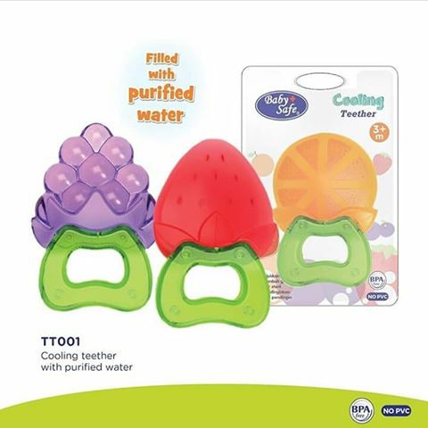 BabySafe Cooling Teether with Purified Water merupakan gigitan bayi yang dirancang untuk mendinginkan atau menenangkan gusi yang gatal dan meradang selama tahap pertumbuhan gigi. Teether ini berisi air steril dan dapat didinginkan di dalam kulkas (bagian cooler) sebelum digunakan si kecil. Terbuat dari bahan yang aman bebas dari Bisphenol A dan PVC. Dilengkapi dengan pegangan untuk memudahkan si kecil menggenggam teether.