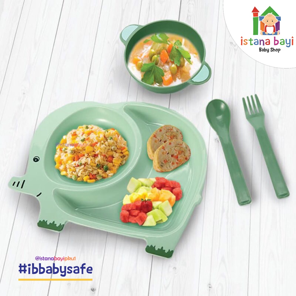 Spesifikasi : - Cocok untuk usia 6 Bulan keatas - BPA FREE dan Bebas Bahan Kimia - Safety Certified - Desain bentuk piring yang menarik bentuknya (Giraffe & Elepahant) & menarik (Print Gambar / Icon Bukan DITEMPEL) - Terbuat dari bahan Plastic yang AMAN untuk digunakan sehari-hari - Ringkas, dapat dibawa berpergian / travelling - 1 Kemasan terdiri dari: - 1 Piring Bersekat - 1 Sendok - 1 Garpu - 1 Mangkuk