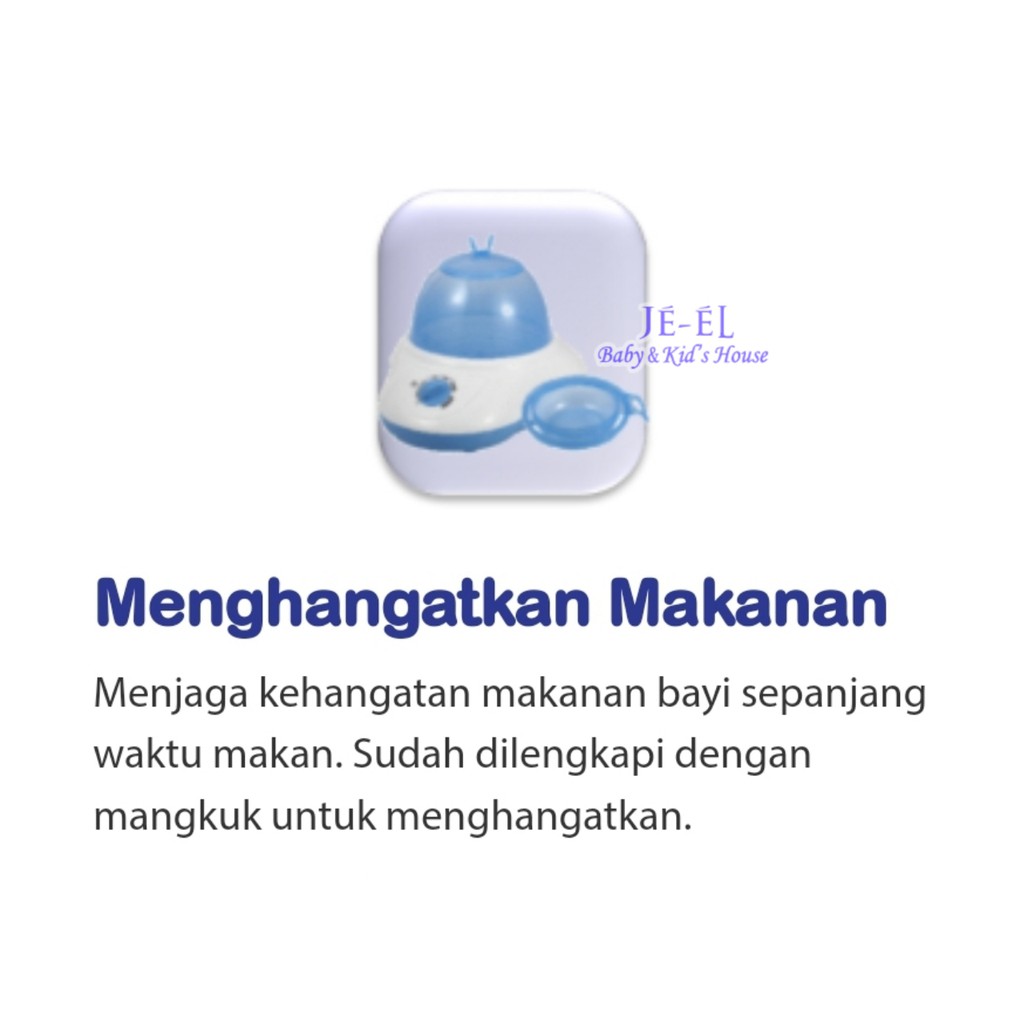 BabySafe Multi-Function Bottle Sterilizer adalah mesin sterilisasi dengan menggunakan tombol putar praktis yang khusus dihadirkan untuk menjamin keamanan botol susu dan perlengkapan bayi lainnya. Selain sebagai mesin sterilisasi yang cepat dan praktis, BabySafe Multi-Function Bottle Sterilizer juga dilengkapi dengan beberapa macam wadah dengan fungsi menarik yang siap membantu para ibu dalam memenuhi kebutuhan si kecil. . FUNGSI [1] Sterilisasi Mampu mensterilisasi 6 botol besar sekaligus dalam 9 menit. Dilengkapi pula dengan capitan (alat penjepit) serta dapat digunakan untuk mensterilisasi perlengkapan bayi lainnya. [2] Menghangatkan Susu Menjaga kehangatan susu bayi dan bahkan dapat membantu mencairkan ASI yang sudah beku. [3] Menghangatkan Makanan Menjaga kehangatan makanan bayi sepanjang waktu makan. Sudah dilengkapi dengan mangkuk untuk menghangatkan. [4] Merebus Telur Mampu merebus telur hingga matang dalam waktu 9 menit. Sudah dilengkapi dengan rak telur. [5] Memeras Jeruk Membantu memeras jeruk. . KEISTIMEWAAN [1] Aman Food Grade Packaging Bebas dari Bisphenol-A Certified by European Safety Standard [2] Cepat 6 botol STERIL dalam 9 menit [3] Mudah Digunakan Tombol putar mudah dioperasikan