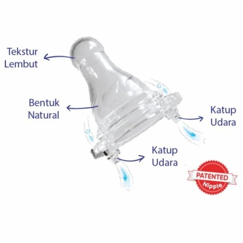 Bentuk dotnya natural menyerupai payudara Ibu, serta tektur silicone yang lembut dan kenyal untuk dihisap bayi. Tersedia dalam ukuran lubang S, Medium (M) Large (L) Extra Large (XL)