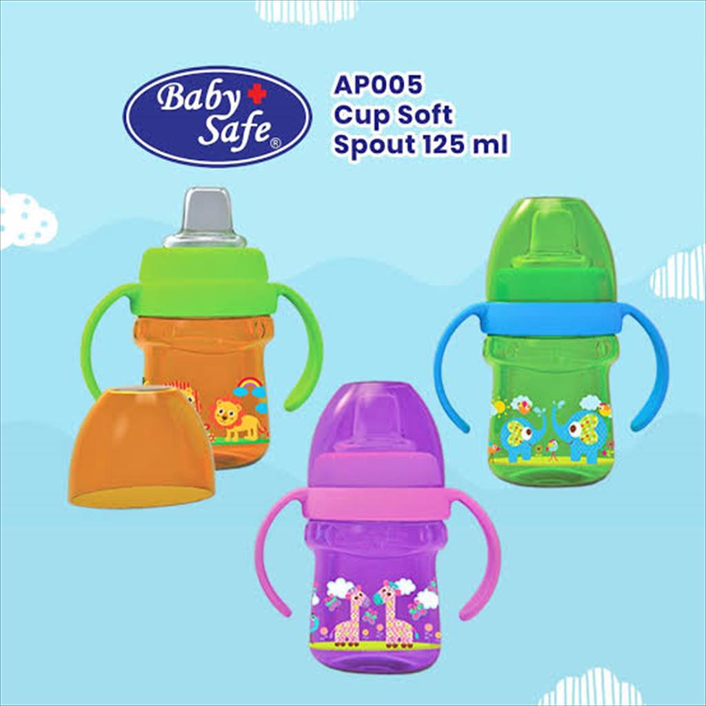 Baby Safe Training Cup Soft Spout 125ml (AP005) Cangkir minum anak dengan model yang menarik, membuat anak tertarik untuk minum menggunakan Baby Safe Training Cup Soft Spout 125ml Terdapat dua sisi pegangan disamping botol, membantu anak untuk belajar memegang botolnya sendiri. Baby Safe Training Cup Soft Spout 125ml didesign khusus untuk mencegah anak kolik (kembung) saat sedang minum susu dengan cara mengurangi gelembung udara didalam susu. Baby Safe Training Cup Soft Spout 125mll telah memenuhi standar nasional dan internasional. kelebihan : Aman : - Terbuat dari bahan yang aman bagi makanan - Bebas dari Bisphenol-A (BPA Free) - Disertifikasi oleh Badan Standarisasi Keamanan Eropa - Terdaftar di Kemenkes RI Sistem Anti-Kembung : - Mengurangi gelembung udara terjadi pada susu yang menyebabkan kembung Botol dengan 2 Genggaman - Terdapat pegangan disisi kiri dan kanan botol agar membantu anak belajar memegang botol minumnya sendiri - Mempermudah masa transisi bayi dari botol ke cangkir minum : Material : Polypropylene (PP) BPA Free & Silicone (dot / sedotan).
