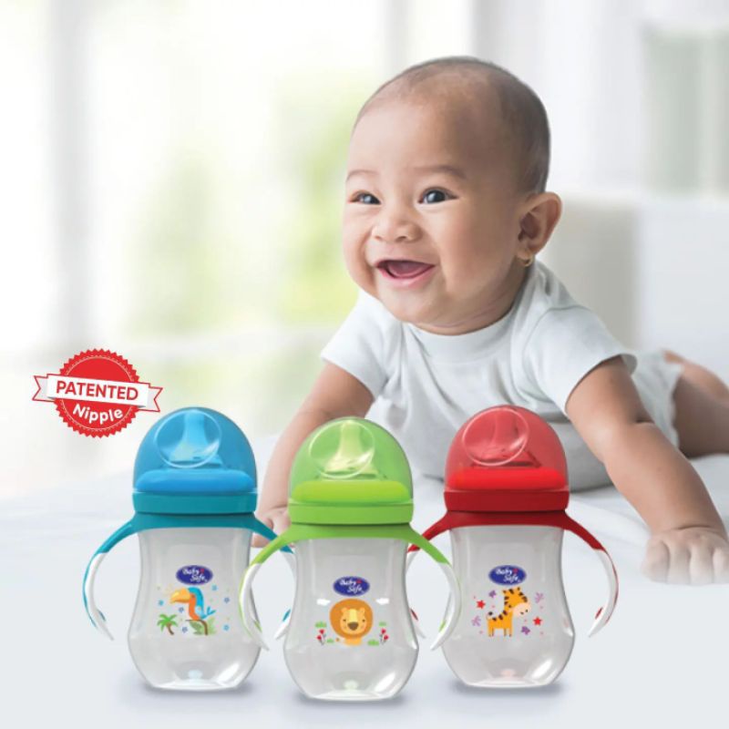 BabySafe Wide Neck Bottle merupakan botol susu bayi dengan leher lebar yang dilengkapi pegangan botol agar mudah digenggam untuk bayi yang belajar memegang.