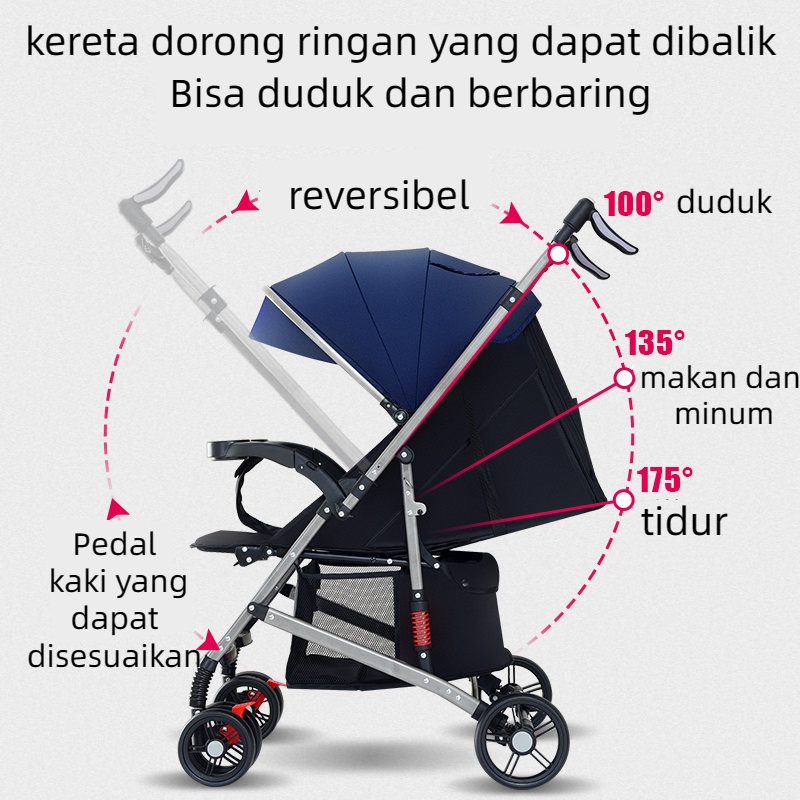 Detail Baby Stroller Kereta Bayi 2-Way Travel With Umbrella Lightweight Foldable Stroller for Baby Cabin Size sangat ringan Stroller