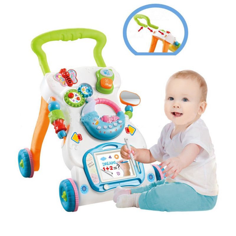 Push Walker berfungsi untuk membantu bayi Anda belajar dan berkembang dari merangkak ke berjalan, yang dilengkapi dengan mainan yang dapat menghibur mereka, sehingga proses pembelajaran lebih menyenangkan. Selain belajar berjalan, bayi Anda juga dapat mengembangkan sistem motorik mereka dengan perlengkapan yang tersedia di alat baby walker tsb, seperti; organ elektronik, papan tulis, telefon genggam mini dsb yg dapat dilihat di foto.