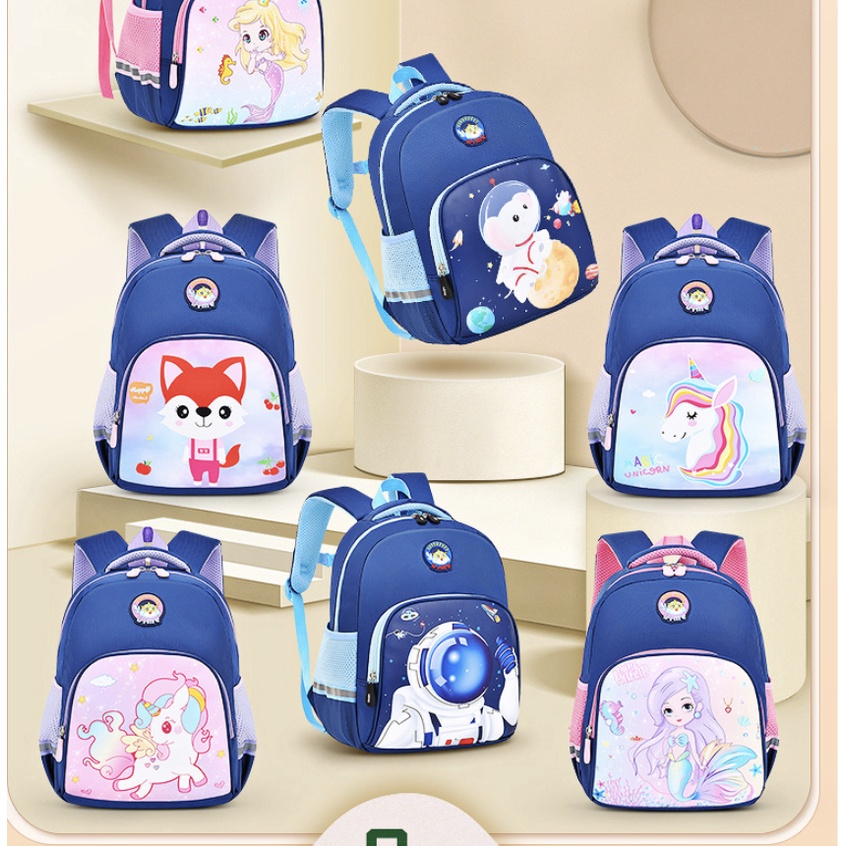 tas ransel anak,, model 2 sleting, kiri kanan ada kantong kecil untuk botol minum ya