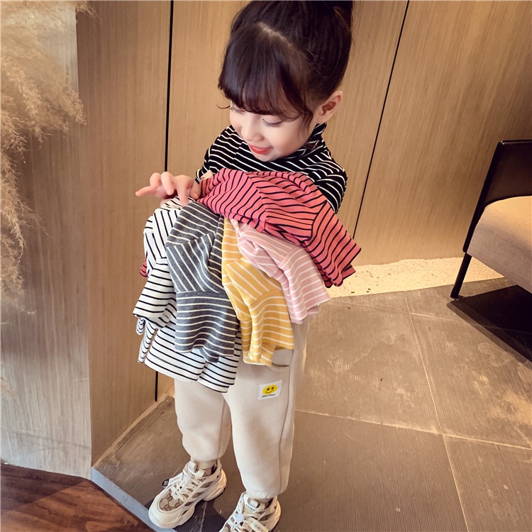 baju turtleneck anak perempuan,, model strip garis, cantik