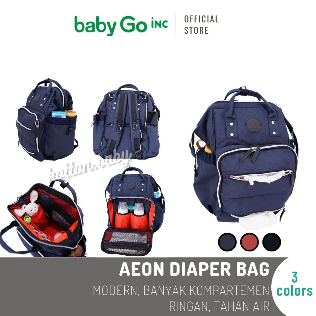 AEON Backpack adalah tas popok modern bergaya yang akan memenuhi kebutuhan ibu dan ayah. Ransel ini memiliki total 13 pengatur, 4 ritsleting akses mudah, 1 pengait teether, dan 1 tempat mainan. Kompartemen depan tas ransel ini memiliki 2 akses mudah untuk memisahkan tisu bayi dan tisu kering, sehingga memudahkan orang tua untuk mengambil tisu atau tisu sesuai dengan kebutuhannya. Dengan bantuan 2 kantong berinsulasi di bagian depan, ibu dapat membawa termos kecil dan botol susu, serta menjaganya tetap hangat untuk waktu yang lebih lama. Ransel ini juga memiliki saku samping yang besar yang dapat menampung 2 botol anak. Di bagian belakang ransel ini, ibu bisa menyimpan ponsel di saku eastyaccess. Selain itu, terdapat ritsleting akses mudah untuk menjangkau bagian bawah kompartemen utama. Saat membawa stroller, ransel ini dapat digantung di stroller dengan menggunakan pengait bawaan stroller yang terpasang di tali belakang ransel ini.